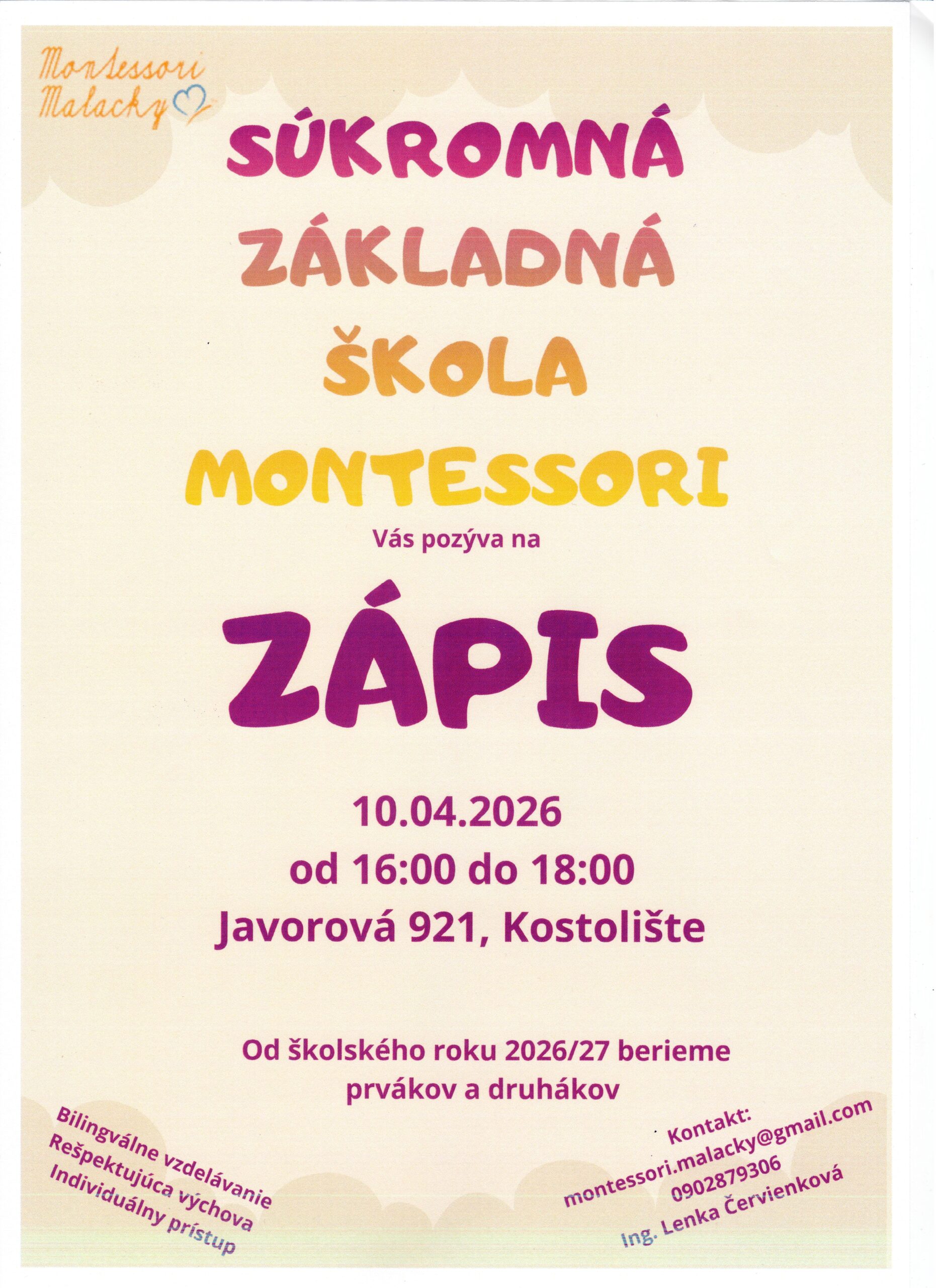 Zápis do súkromnej ZŠ Montessori v Kostolišti